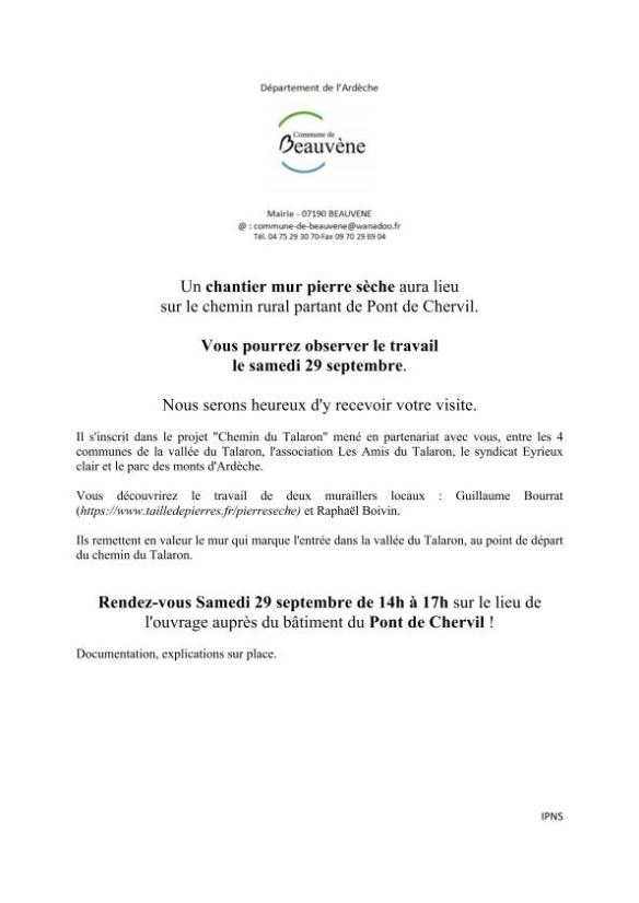 une invitation « des amis du Talaron » Publié le 27 septembre 2018 par assobc AFFICHE CHANTIER CHERVIL Partager : Partager sur X(ouvre dans une nouvelle fenêtre) X Partager sur Facebook(ouvre dans une nouvelle fenêtre) Facebook Email a link to a friend(ouvre dans une nouvelle fenêtre) E-mail J’aime chargement…