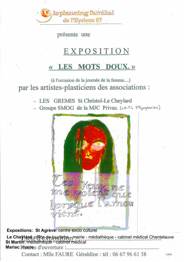 A l’occasion de la journée de la femme, le planning familial de l’Eyrieux 07 organise des expositions d’artistes des associations: