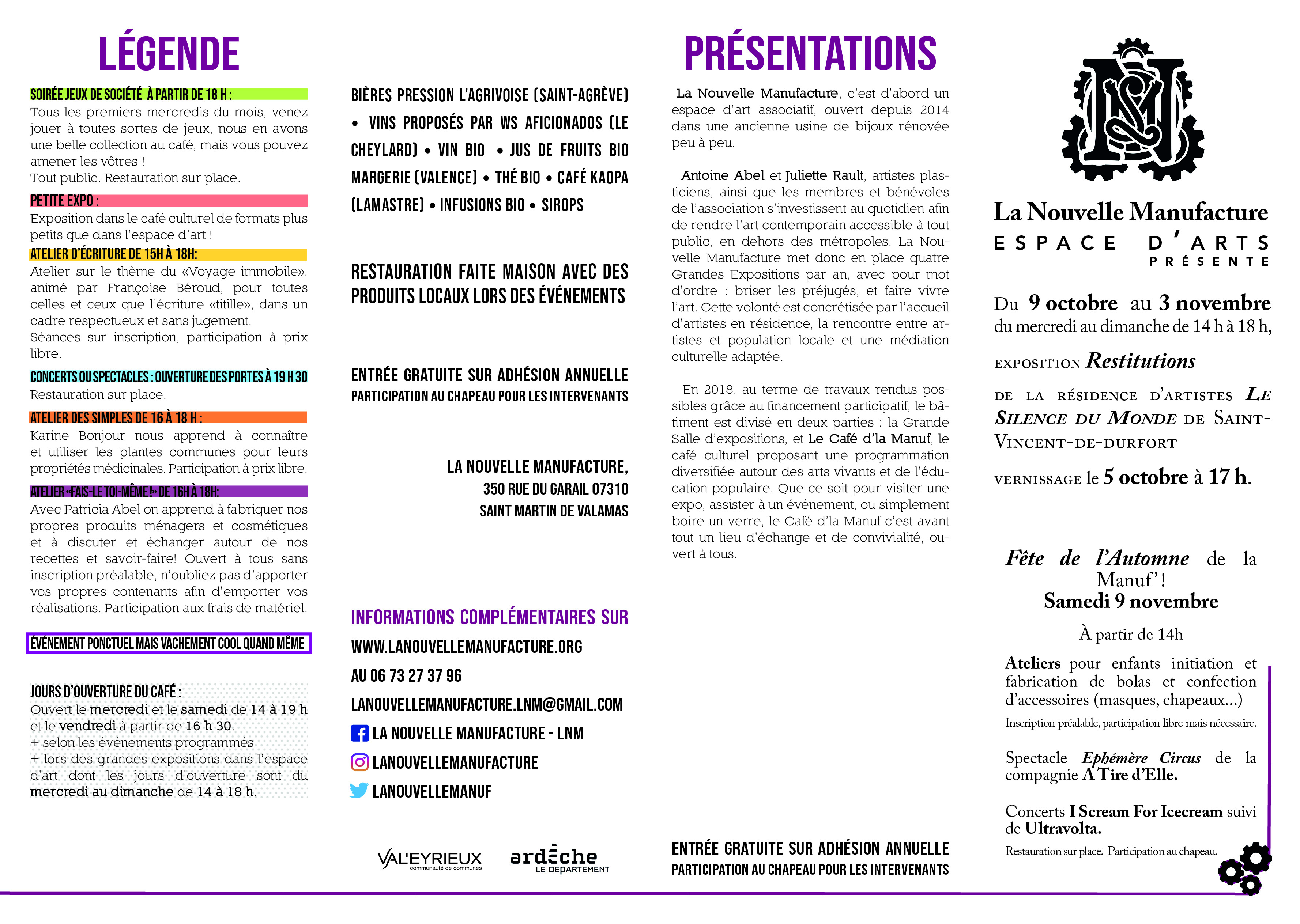 Voici la programmation de La Nouvelle Manufacture pour le mois de novembre :