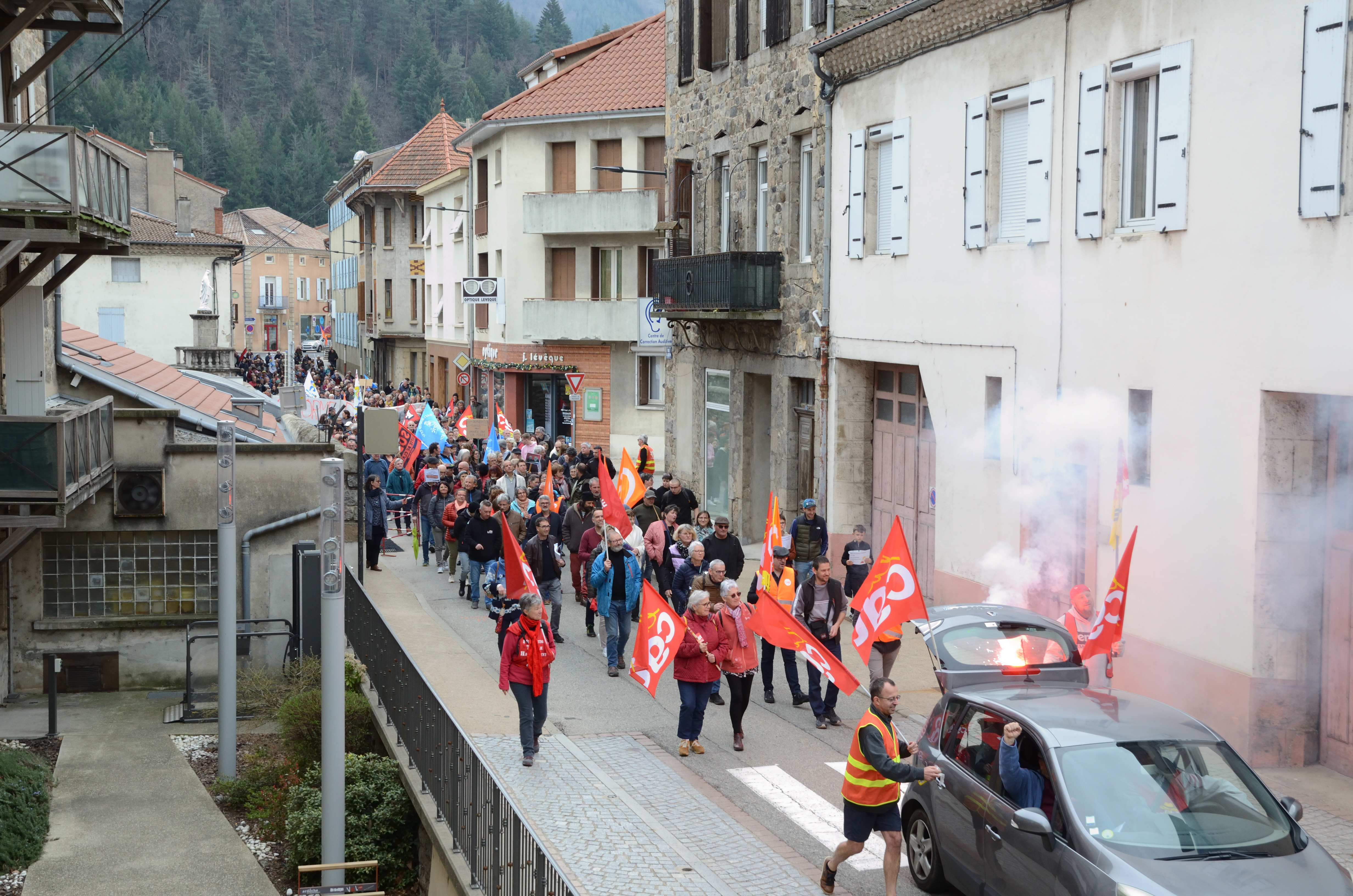 nombreux devant la mairie du Cheylard pour